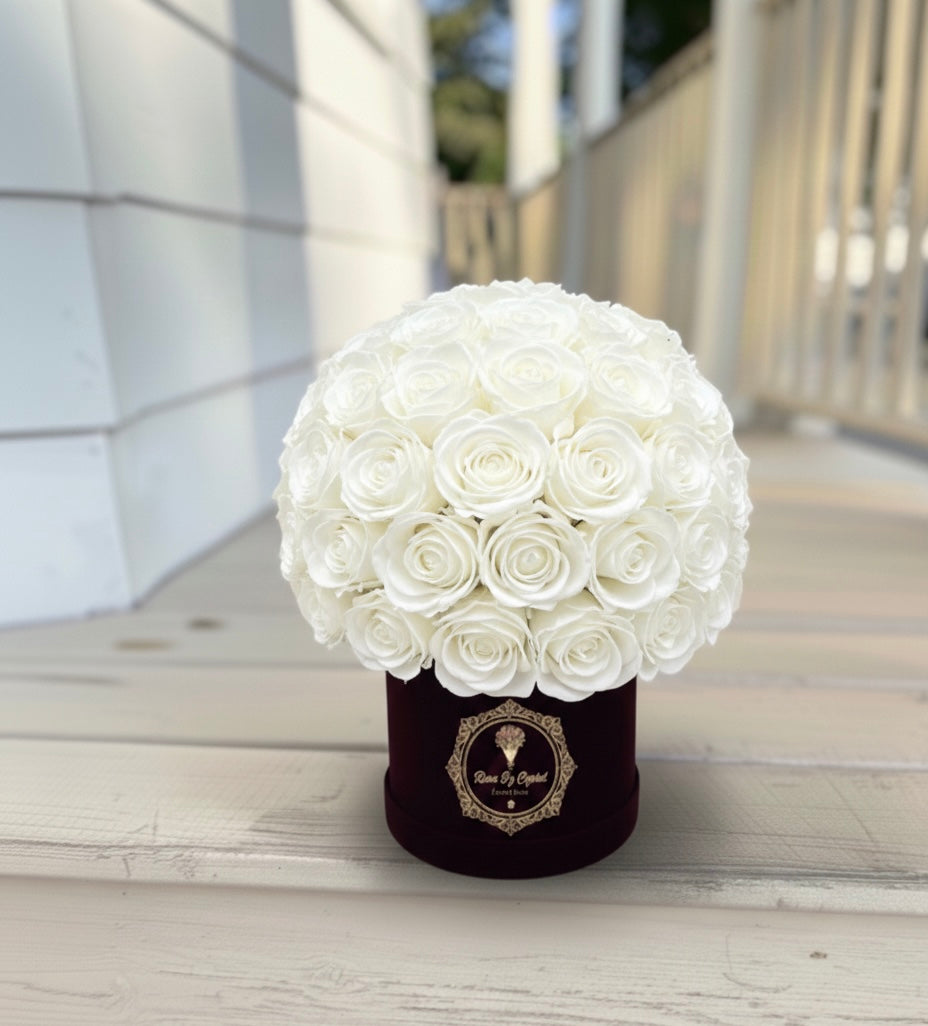 Amore Luxe Roses is an elegant dome-shaped arrangement of premium roses, artfully placed in a signature box for a timeless, luxurious finish. Designed to make a statement, this arrangement is perfect for celebrating love, milestones, and unforgettable moments. Each rose is carefully selected and hand-arranged to create a full, romantic presentation that reflects sophistication and beauty from every angle.